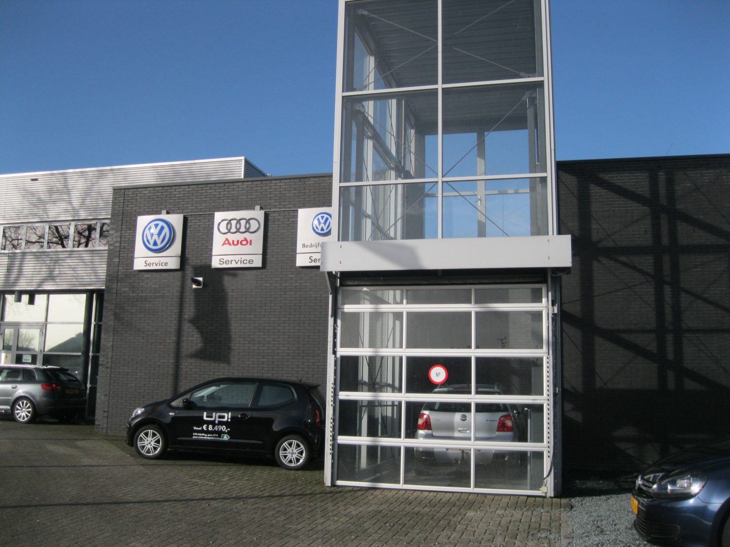 Bilforhandleren Heron i Amsterdam bruger en glaselevator til biler, der er synlig udefra. Denne bilelevator skulle naturligvis passe perfekt til bygningens og udstillingshallens design. Da skinnerne til en ledhejseport ville ødelægge det samlede udtryk, og der er begrænset plads i bilelevatoren, valgte virksomheden en Compact-foldeport. Takket være den eksterne installation optager porten ingen plads i elevatoren. Desuden kunne designet tilpasses, så det passer godt til bygningen. Da showroomet og elevatoren er af glas, blev porten også udført på samme måde. Det endelige resultat er imponerende.