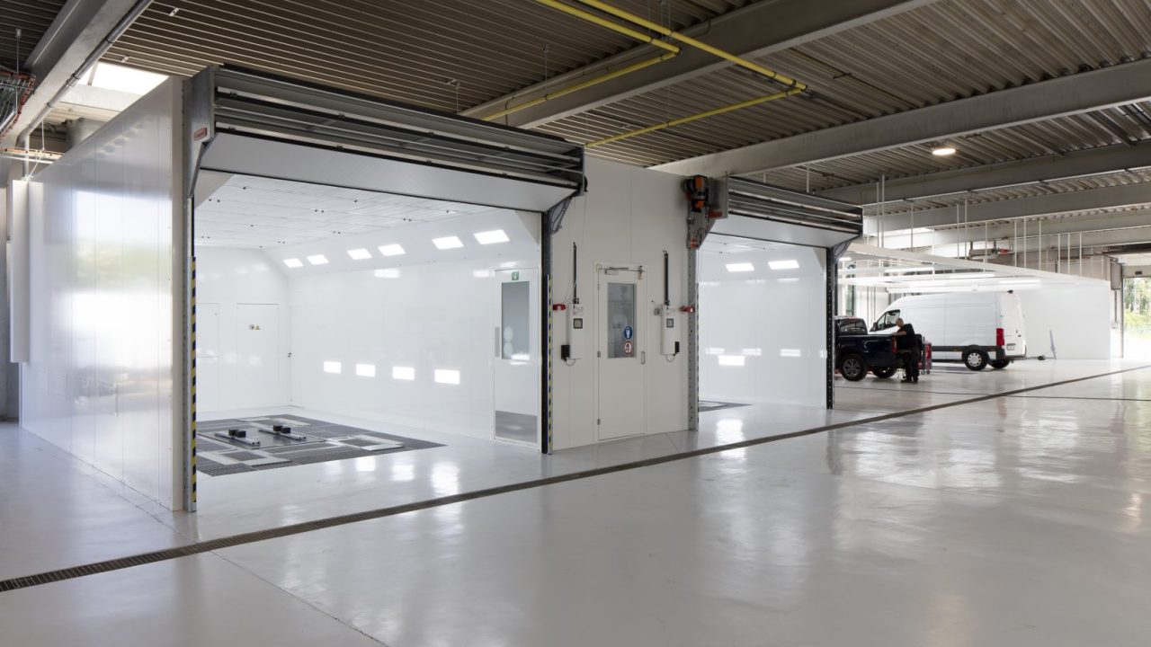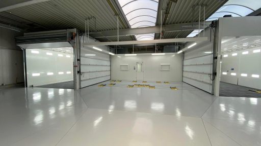 I sprøjtekabiner, som i dette projekt fra Sima NV, er det meget vigtigt ikke at forstyrre arbejdsområdet med bevægelige dele, der kan samle støv. Compact-sprøjtekabineporten installeres på ydersiden af kabinen og foldes op over portåbningen for at spare plads uden behov for loftophæng. Dette hjælper ikke kun med at udnytte den begrænsede plads indeni effektivt, men eliminerer også bevægelige dele i rummet, så arbejdsmiljøet forbliver rent.