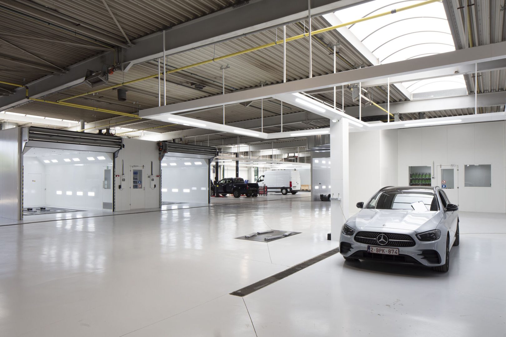 De fuldt glasbeklædte paneler i øjenhøjde giver et klart overblik over fremskridtet i sprøjteprocessen. Den hvide farve på porten får rummet til at virke lysere og mere rummeligt. Beslutningen om at bruge Compact-porte i sprøjtekabiner er primært baseret på det pladsbesparende system. Dette har nemlig ingen forhindringer hverken inden for eller uden for kabinen. I modsætning til konventionelle porte, der glider op langs loftet og kan tabe snavs på de nyligt malede emner, har Compact-porten en kompakt fold, der ikke rager ud i rummet. Dette sikrer en smidig arbejdsgang. Desuden sikrer installationen på ydersiden af kabinen, at de følsomme dele af porten er beskyttet mod aggressive midler.
