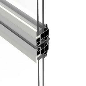 Fuldt synlige paneler er hule aluminiumsprofiler med lodrette midterstolper og en fyldning efter eget valg. Fyldningerne fastgøres på indersiden med en hvid ramme, der består af polyethylen og gummi.