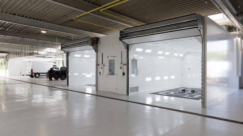 Compact-porte tilbyder fleksibilitet i designet, og deres skinnesystemer giver en kvalitetsfinish og perfekt integration i udstillingslokalet eller leveringsområdet for biler. Maksimer den tilgængelige plads i dit værksted, samtidig med at du bevarer plads til belysning og installationer.