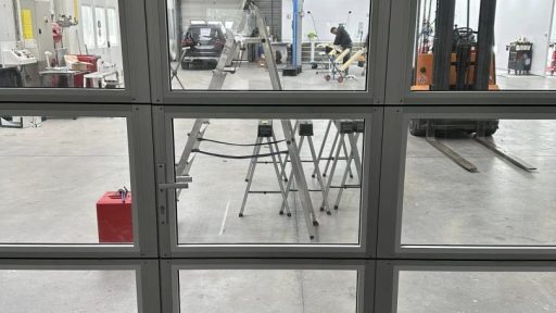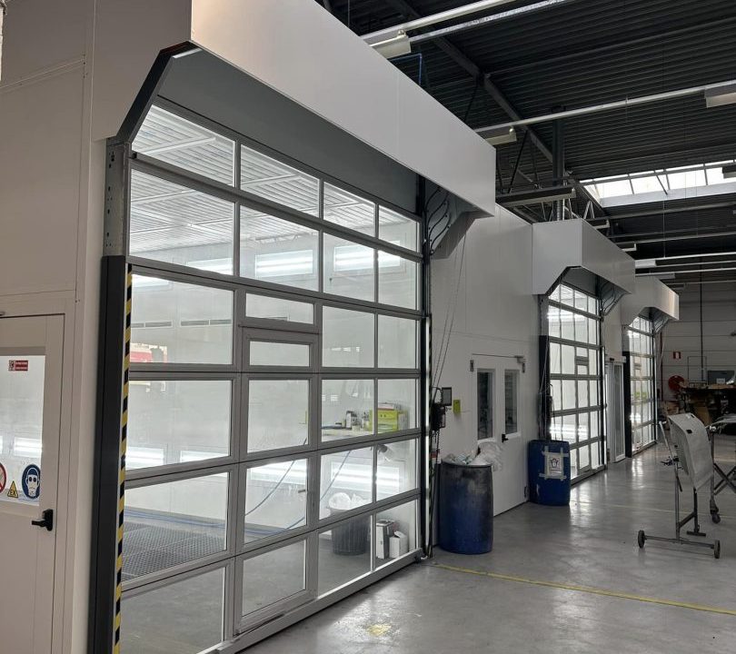 Carcenter Zeebrugge fand eine gläserne Spritzkabinentür am schönsten. Da die Tore aus Glas sind, kann man leicht hineinsehen und genau beobachten, was dort geschieht. Das kann interessant sein, um Kunden einen Einblick in die Arbeiten zu geben. Aber auch für die Mitarbeiter ist es praktisch, da das Tor einfach geschlossen bleiben kann und der Mitarbeiter weiterarbeiten kann.