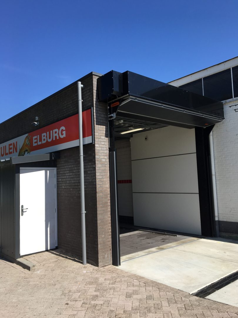 It is also possible to install the Compact door on the outside of a building, literally in the open air. Examples include renovation projects and the replacement of existing sliding doors or roller shutter doors. A traditional overhead door cannot be installed on the outside of a building due to its bulky rail system. The “side-bearing” folding construction of the Compact doors is the perfect solution in these cases.