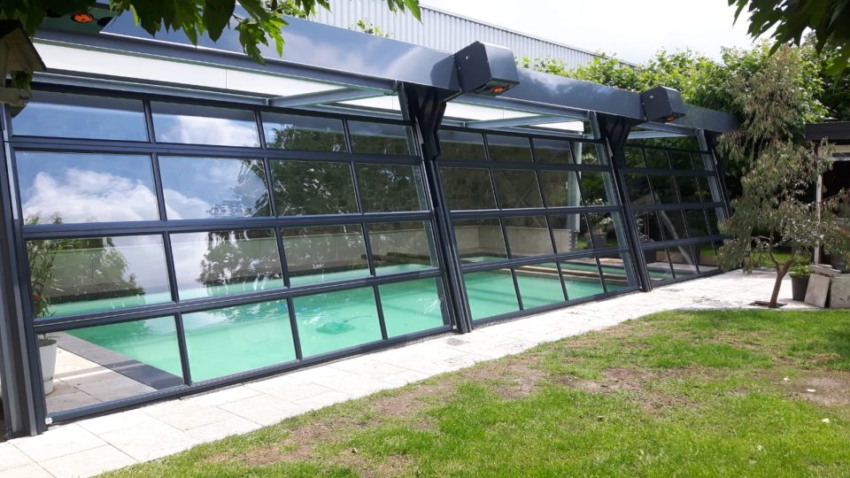 En esta piscina para todo tipo de clima, Rolflex combina funcionalidad y diseño. Gracias a las puertas plegables Compact, se puede nadar durante todo el año. Las puertas hechas a medida proporcionan una solución elegante y práctica, perfectamente adaptada a las necesidades únicas de este proyecto de piscina.