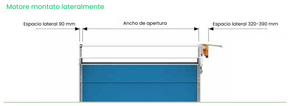 En este caso, el espacio superior adicional es el espacio para el motor situado encima del conjunto de la puerta. Hay varios factores que determinan el espacio superior total de la puerta. Para más información, consulte «¿Cuánto espacio necesito alrededor de la puerta?».