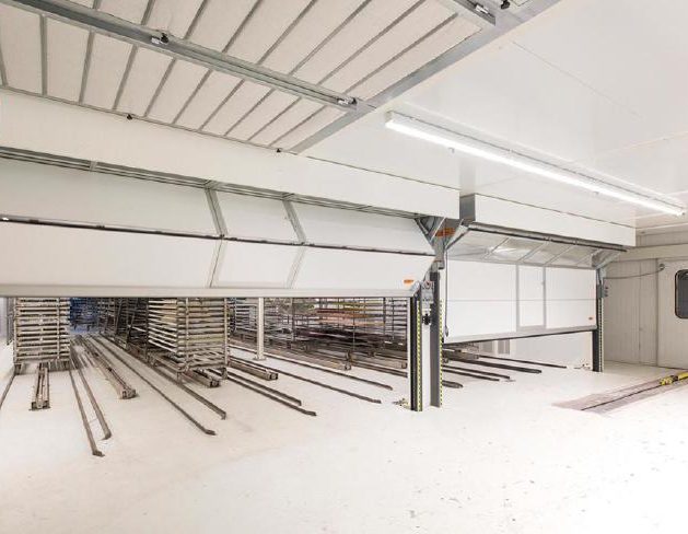 La puerta enrollable Compact se utiliza habitualmente en cabinas de pintura. Cabinas de pintura para talleres de reparación de automóviles y carrocerías, pero también es una puerta enrollable ideal para cabinas de pintura en empresas de recubrimiento metálico y, como en este caso, en una conocida fábrica de camas holandesa.