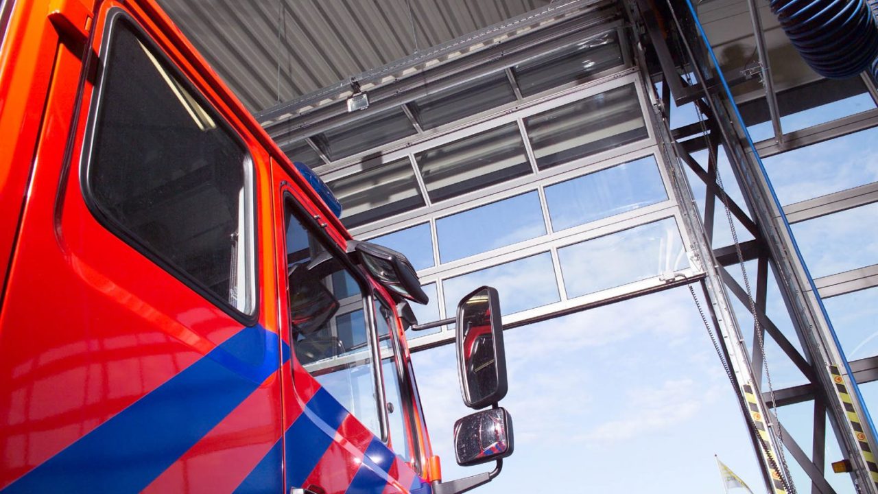 A la hora de elegir puertas seccionales para parques de bomberos, la fiabilidad es, por supuesto, una de las principales prioridades. La opción de un motor de alta velocidad también suele ser un requisito importante. Dado que los camiones de bomberos suelen estar aparcados cerca de la entrada, es importante que todas las instalaciones estén también cerca de los vehículos. Las tuberías, la iluminación, los sistemas de extracción, etc. suelen instalarse en el techo y alrededor de la abertura de la puerta. A la hora de elegir la puerta seccional, el cuerpo de bomberos de Hoevelaken sopesó los requisitos mencionados anteriormente y se decantó por la puerta seccional Compact.