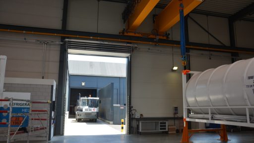¿Tiene curiosidad por saber cómo funcionan estas puertas en la práctica? El proyecto DEMI Container Services demuestra cómo las puertas Compact funcionan a la perfección incluso en entornos industriales exigentes, combinando sistemas de grúas, aplicaciones pesadas y un diseño inteligente de puertas en una solución perfecta.
