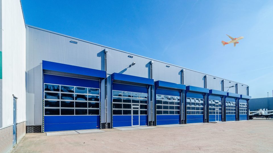 La puerta Compact está disponible con una amplia gama de opciones de acristalamiento, numerosos colores y algunas características especiales, como una puerta peatonal o una opción de alta velocidad.