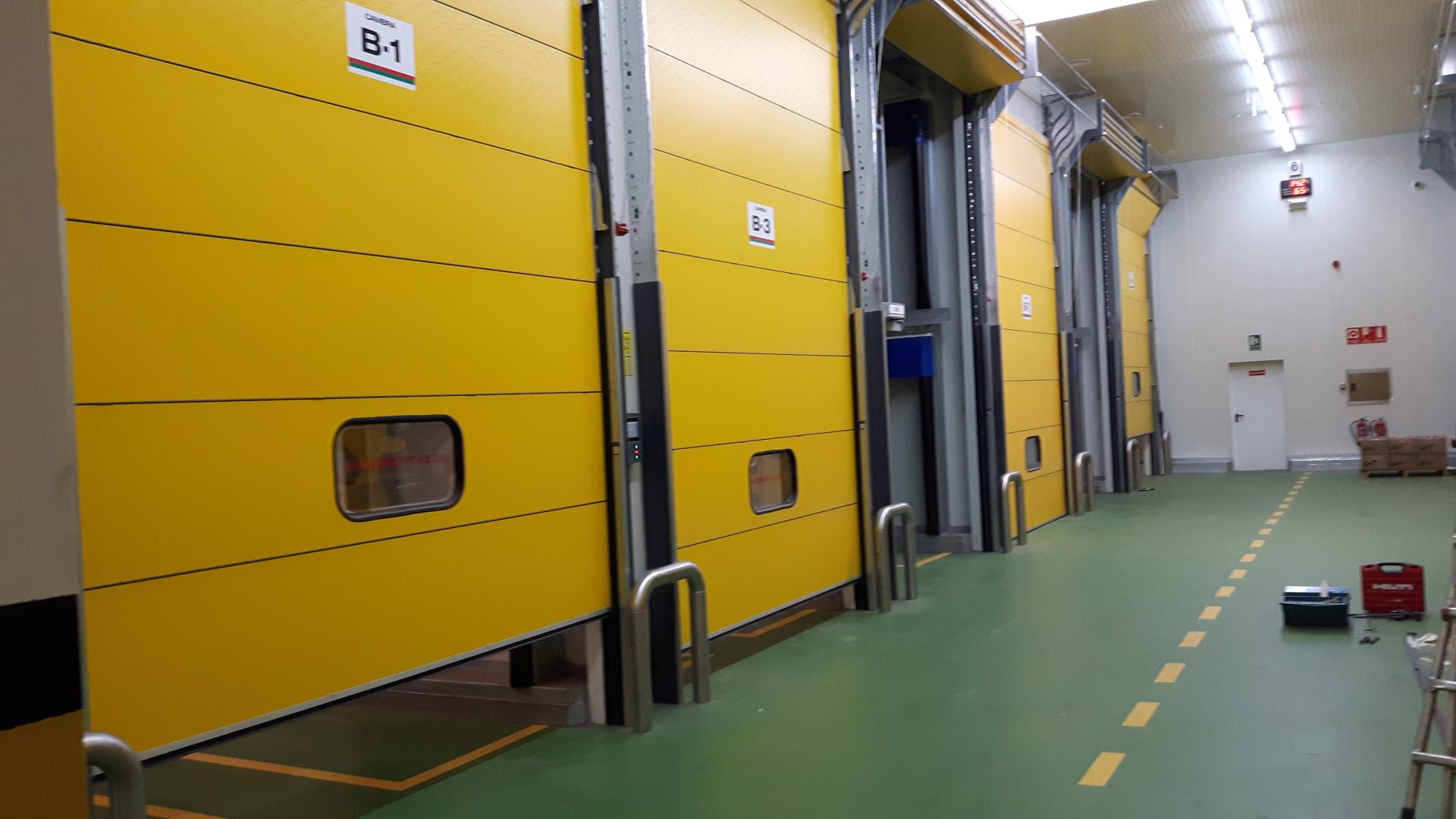 Pour ce projet, le client avait une demande particulière. Le bâtiment comprenait plusieurs chambres de maturation qui devaient être bien fermées. Les portes industrielles devaient être bien isolées et prendre peu de place, car elles devaient être installées très près les unes des autres. La porte Compact s’est avérée être la solution idéale.