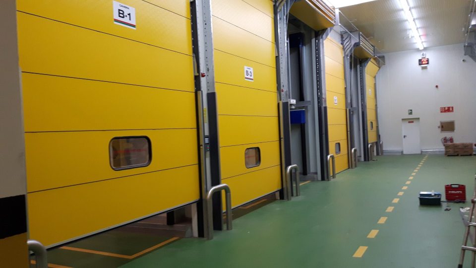 In questo progetto, una tenda tagliafuoco è stata posizionata davanti a un portone Compact. Il portone Compact è per l’uso quotidiano, mentre la tenda si chiude automaticamente solo in caso di incendio.