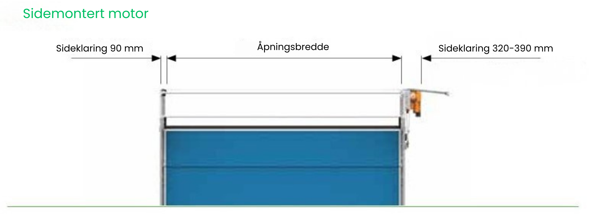 Motoren til Compact-porten kan monteres på siden, foran eller over portåpningen. Som standard er motoren montert på siden av porten. Dette kan være enten på høyre eller venstre side.