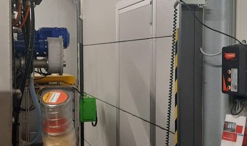 For dette vannrenseanlegget i Wijster har Waterstromen B.V. sammen med Wopereis Staalbouw B.V. valgt den plassbesparende Compact seksjonsdøren med gangdør. Rommet som lukkes av Compact-porten, ligger over en betongsilo. I rommet finnes det forskjellige installasjoner som gjør at innbyggingsplassen er begrenset.
