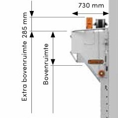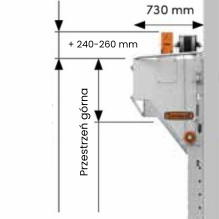Jeśli dostępna przestrzeń boczna jest mniejsza niż 325 mm, można wybrać silnik górny. Wymaga to dodatkowej przestrzeni górnej wynoszącej 230 mm.