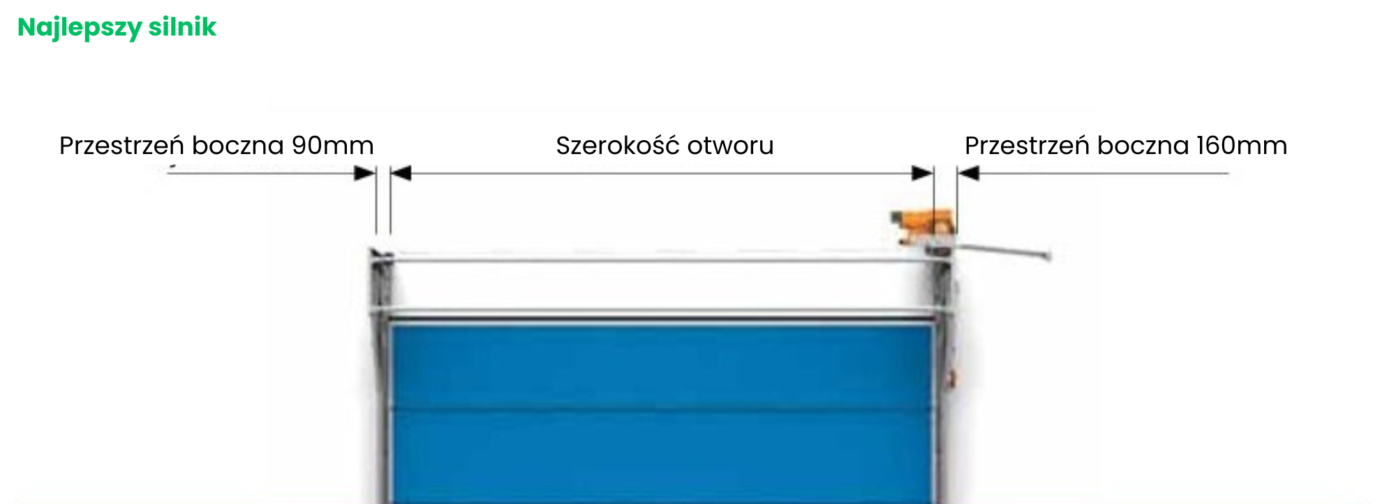 Dodatkowa przestrzeń nad głową to miejsce potrzebne na silnik w górnej części pakietu bramy. Więcej informacji na temat wymaganej przestrzeni nad głową można znaleźć tutaj.