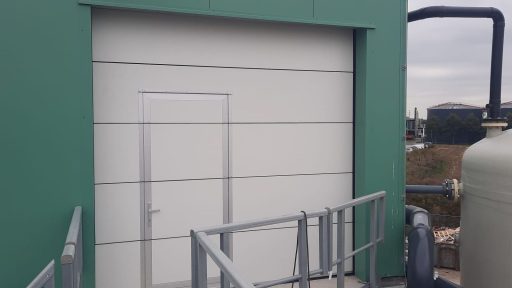 W przypadku tej oczyszczalni ścieków w Wijster firma Waterstromen B.V. wraz z Wopereis Staalbouw B.V. zdecydowała się na oszczędzającą miejsce bramę Compact z drzwiami przejściowymi. Pomieszczenie zamykane bramą Compact znajduje się nad betonowym silosem. W pomieszczeniu tym znajduje się kilka instalacji, które ograniczają przestrzeń montażową.
