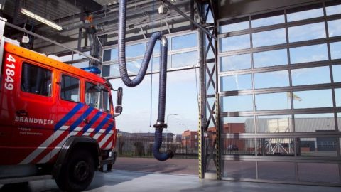 Vid installation på utsidan medföljer ett skyddande hölje som skyddar motorn och portkonstruktionen mot regn och vind. En intelligent lösning för brandstationer med begränsat utrymme eller komplex installation inomhus.
