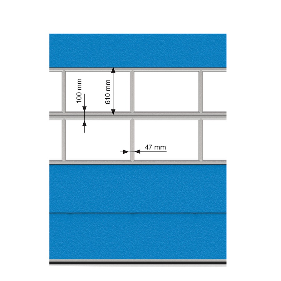 Den mest använda termoplastiska fyllningen i industriportar. Slitstark och lätt. Dubbelglasad för användning i ytterdörrar. Enkelglasad för användning i ouppvärmda utrymmen eller inomhus.