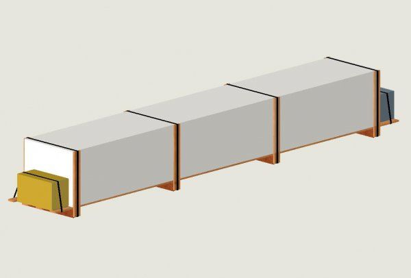 Andra varor kan också lastas i denna container, och det kan hända att varorna lastas av från en lastbil eller en annan container. Med denna förpackning får Compact-vikporten maximalt skydd. Denna förpackning måste beställas separat. Var försiktig vid avlastning med kran eller gaffeltruck för att undvika onödiga skador.