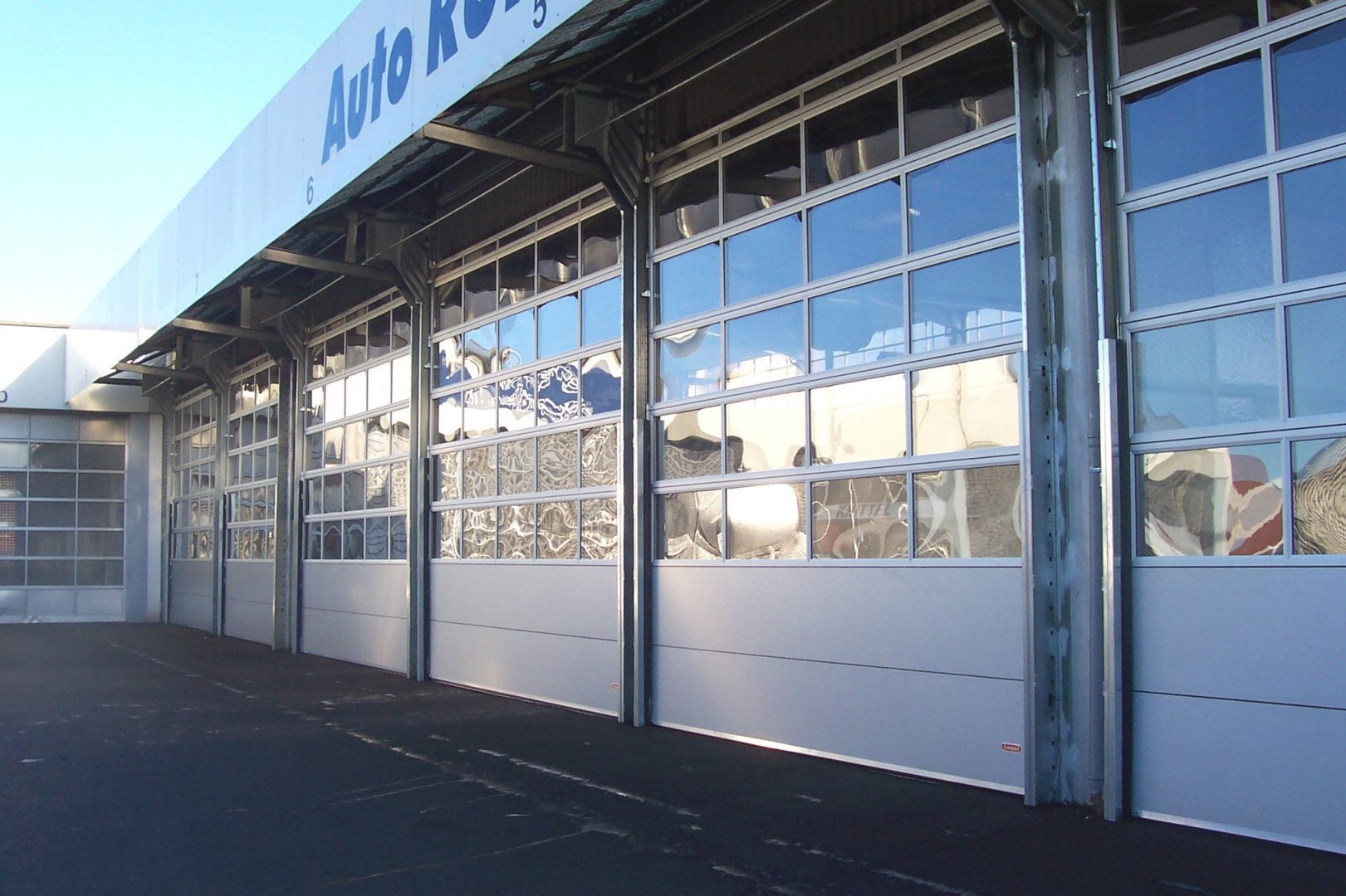 Det är också möjligt att montera Compact-porten på byggnadens yttervägg, alltså bokstavligen utomhus. Tänk till exempel på renoveringsprojekt och vid byte av befintliga skjutportar eller rullportar. En traditionell takskjutport kan inte monteras på ytterväggen på grund av det omfattande skensystemet. Den ”sidobärande” vikkonstruktionen hos Compact-porten är i dessa fall den perfekta lösningen.