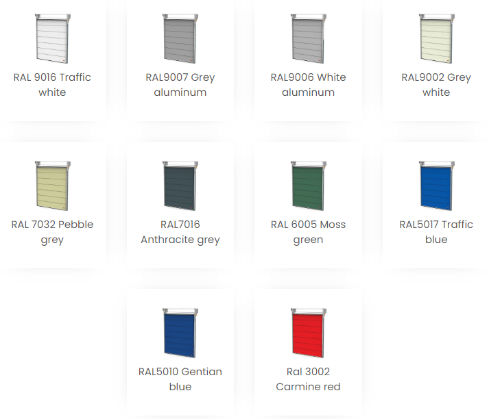 Porttillverkarna erbjuder vanligtvis ett specifikt färgurval. Det är färger som de flesta kunder väljer. Det är helt enkelt omöjligt att alltid ha alla tillgängliga färger i lager under produktionen. Bara RAL-färgerna omfattar redan cirka 2500 nyanser.