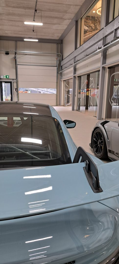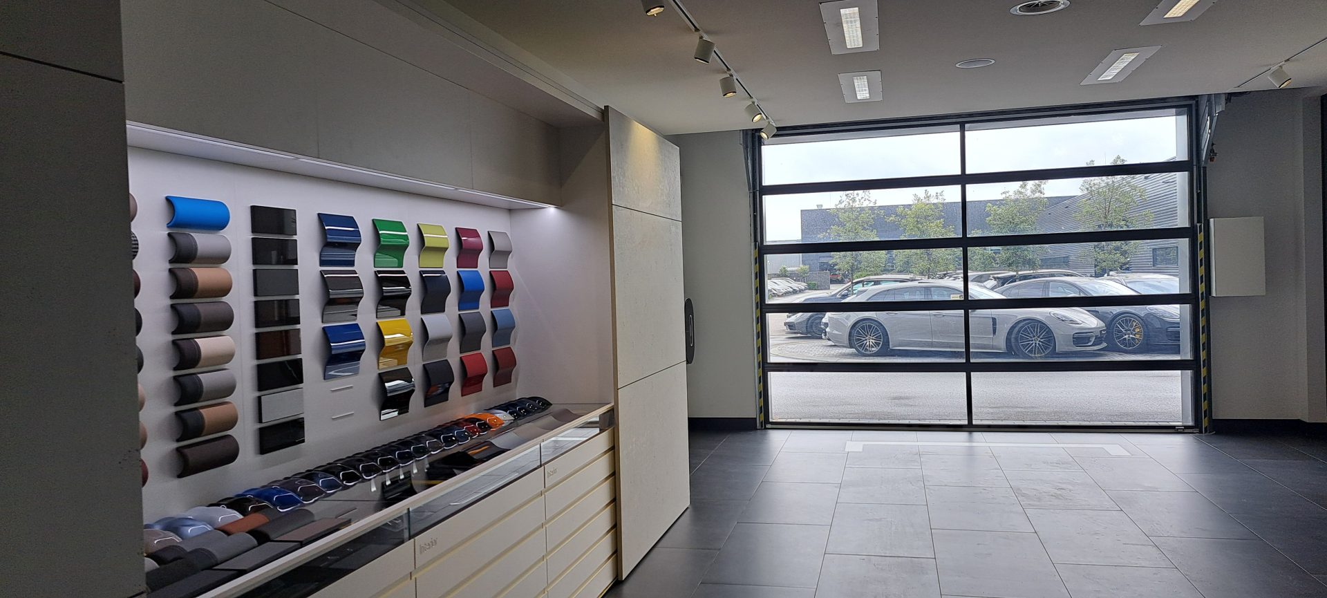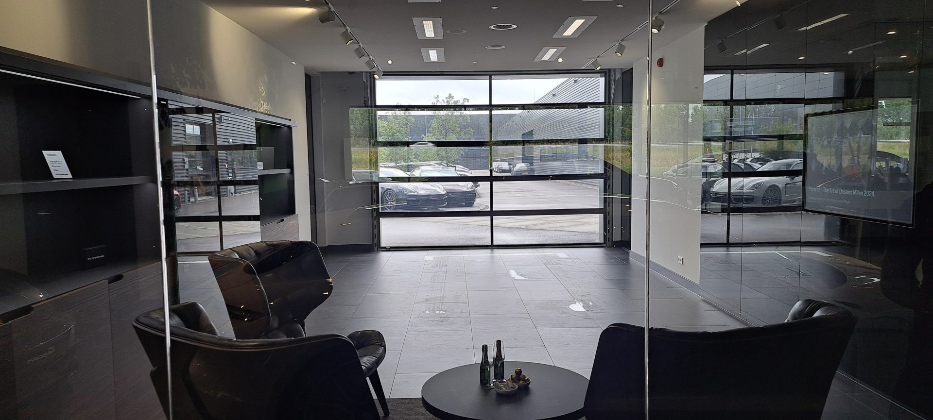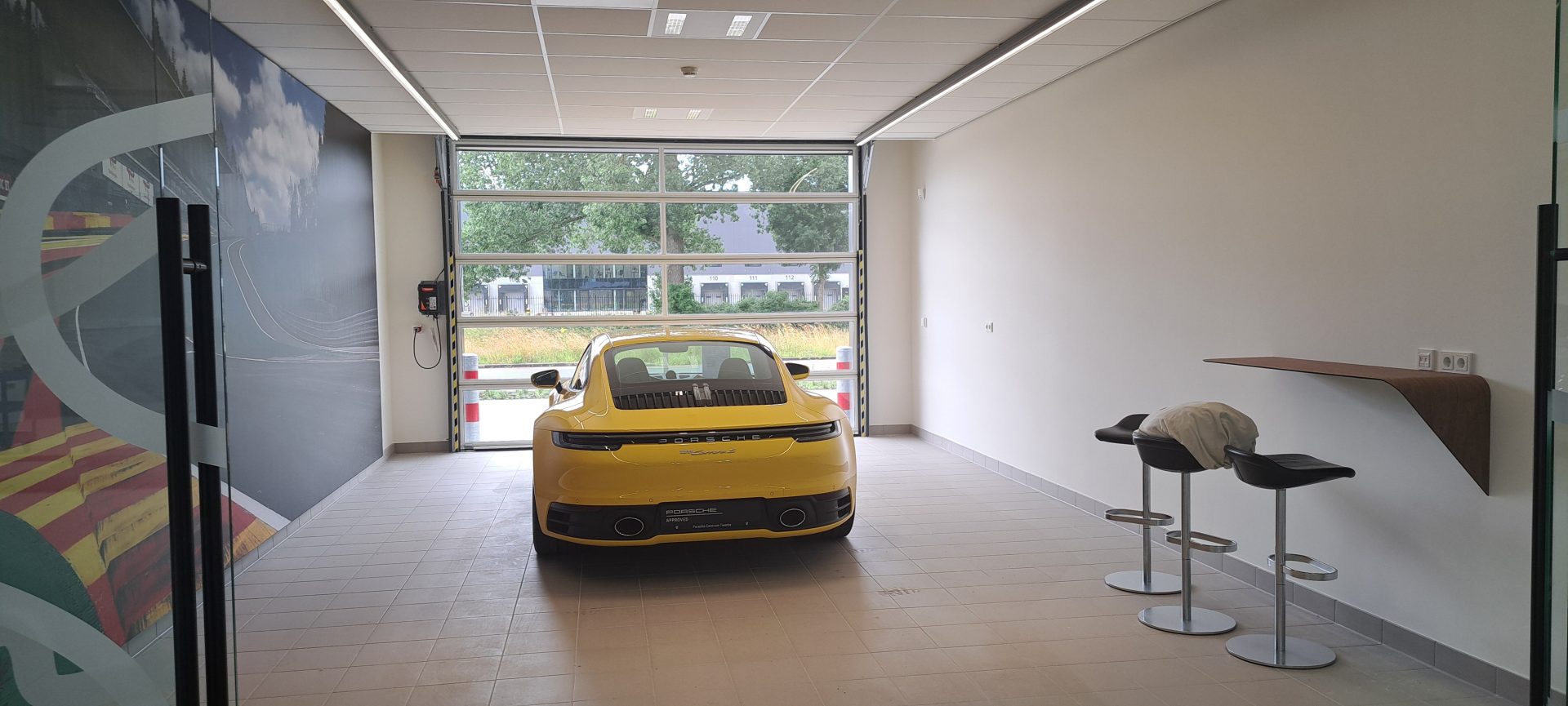 Porsche Centrum Twente lägger stor vikt vid byggnadens finish. Naturligtvis riktas snart all uppmärksamhet mot de Porsche-bilar som ställs ut här. I leveransutrymmena har man monterat Compact-porten, där kunderna snart kan beundra sina nya fordon för första gången. På denna plats ville återförsäljaren ha en lyxig utstrålning som gör rättvisa åt de vackra bilarna. Eftersom Compact-porten tack vare sitt smarta vikningssystem kunde döljas snyggt i taket var detta det perfekta valet.