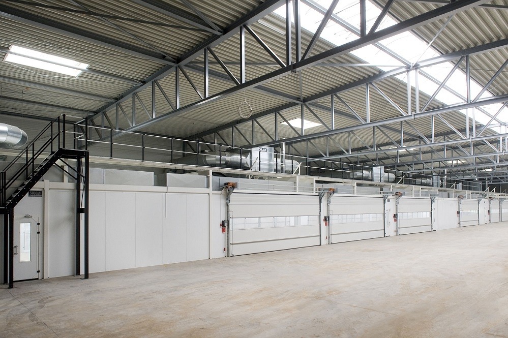 Compact-rullporten används ofta i sprutboxar. Sprutboxar för bilverkstäder och karosseribyggerier, men den är också en idealisk rullport för sprutboxar i metallbeläggningsföretag och, som i detta fall, i en välkänd nederländsk sängfabrik.