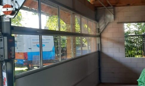 Takskjutporten till skjulet försågs med Full Vision-paneler så att mer dagsljus kan komma in i byggnaden. Det är alltså trevligt ljust i skjulet under dagen, även när dörren är stängd. Detta är mycket praktiskt när olika arbeten måste utföras.